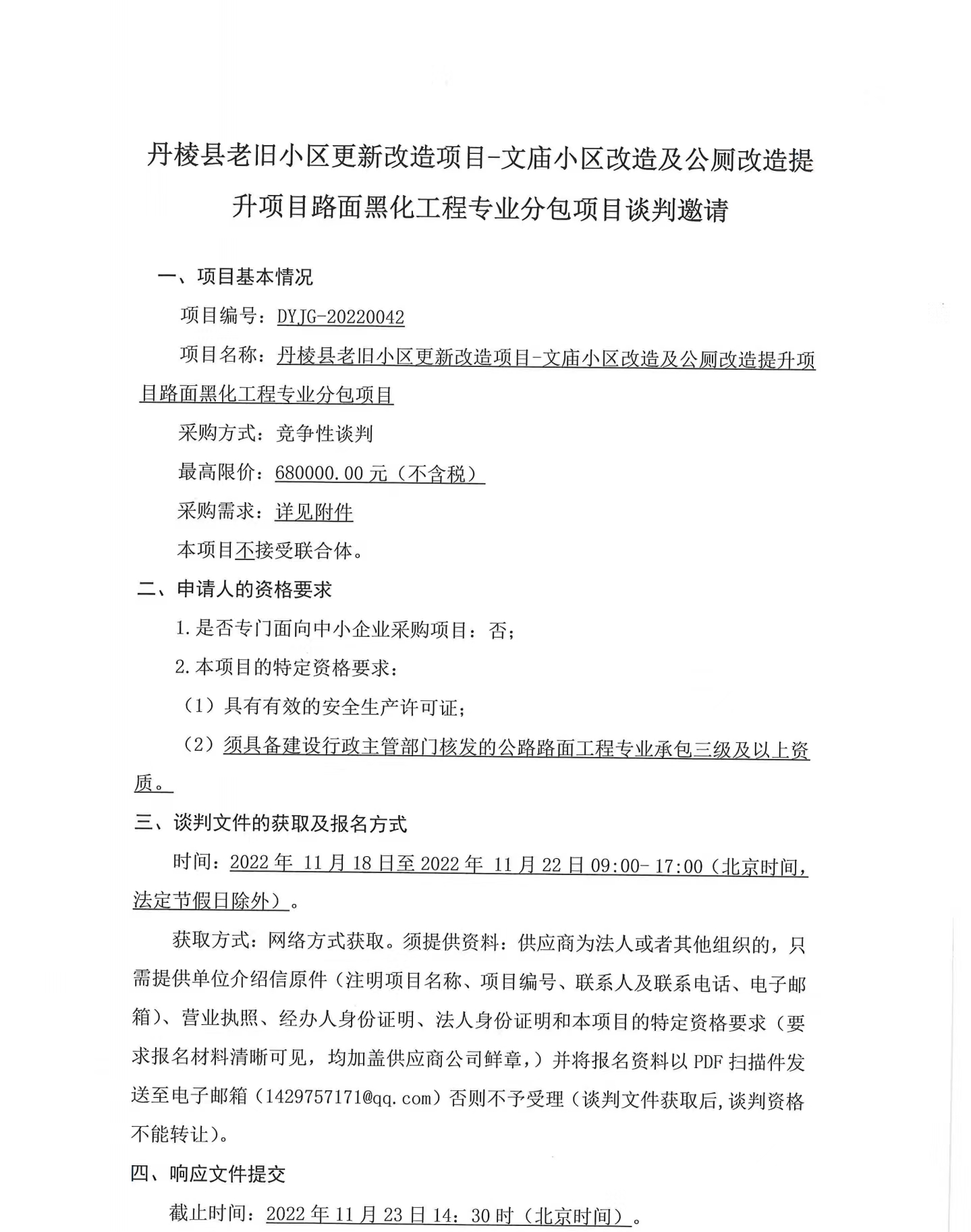 丹棱縣老舊小區(qū)更新改造項目-文廟小區(qū)改造及公廁改造提升項目路面黑化工程專業(yè)分包項目競爭性談判邀請公告