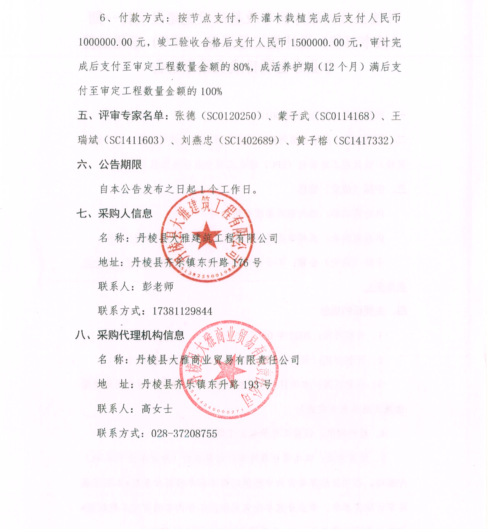 丹棱縣熊河碥片區(qū)市政基礎(chǔ)設(shè)施建設(shè)項目一期(城市雙修)設(shè)計施工總承包(EPC)綠化工程 專業(yè)分包項目成交結(jié)果公告