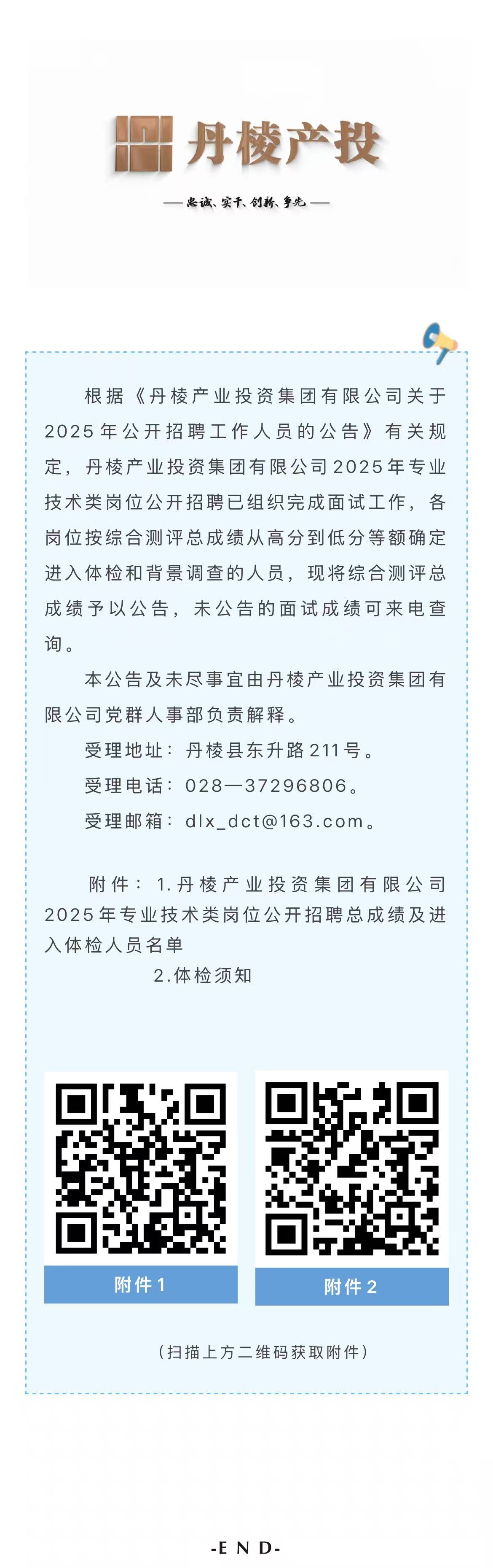 丹棱產(chǎn)業(yè)投資集團(tuán)有限公司關(guān)于2025年專(zhuān)業(yè)技術(shù)類(lèi)崗位公開(kāi)招聘總成績(jī)的公告