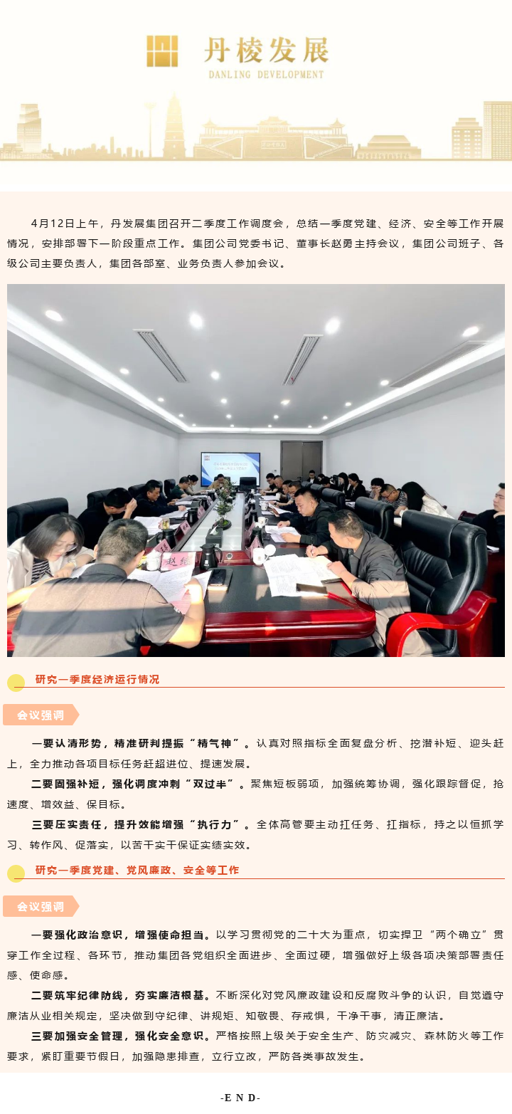 全面盤點(diǎn)提效能 昂首奮戰(zhàn)“雙過(guò)半”——丹發(fā)展集團(tuán)召開(kāi)二季度工作調(diào)度會(huì)