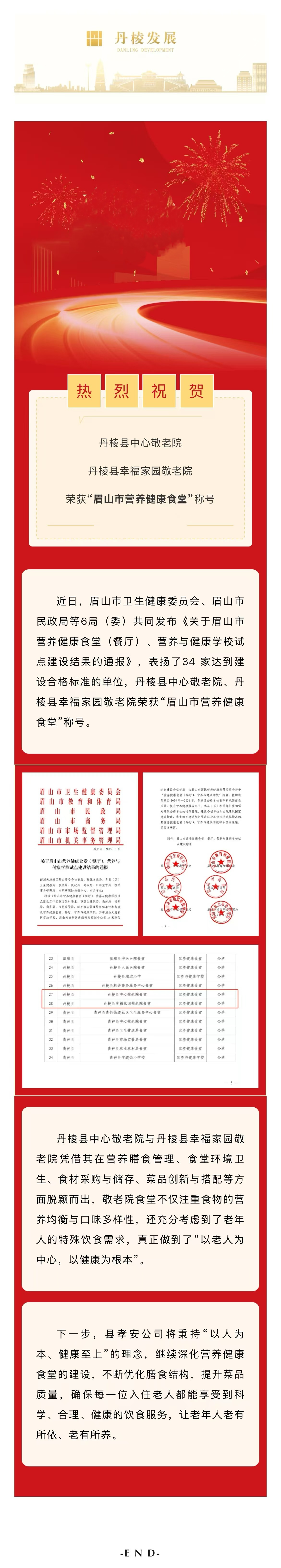 【縣孝安公司】喜報(bào)!丹棱縣中心敬老院、丹棱縣幸福家園敬老院榮獲“眉山市營(yíng)養(yǎng)健康食堂”稱(chēng)號(hào)