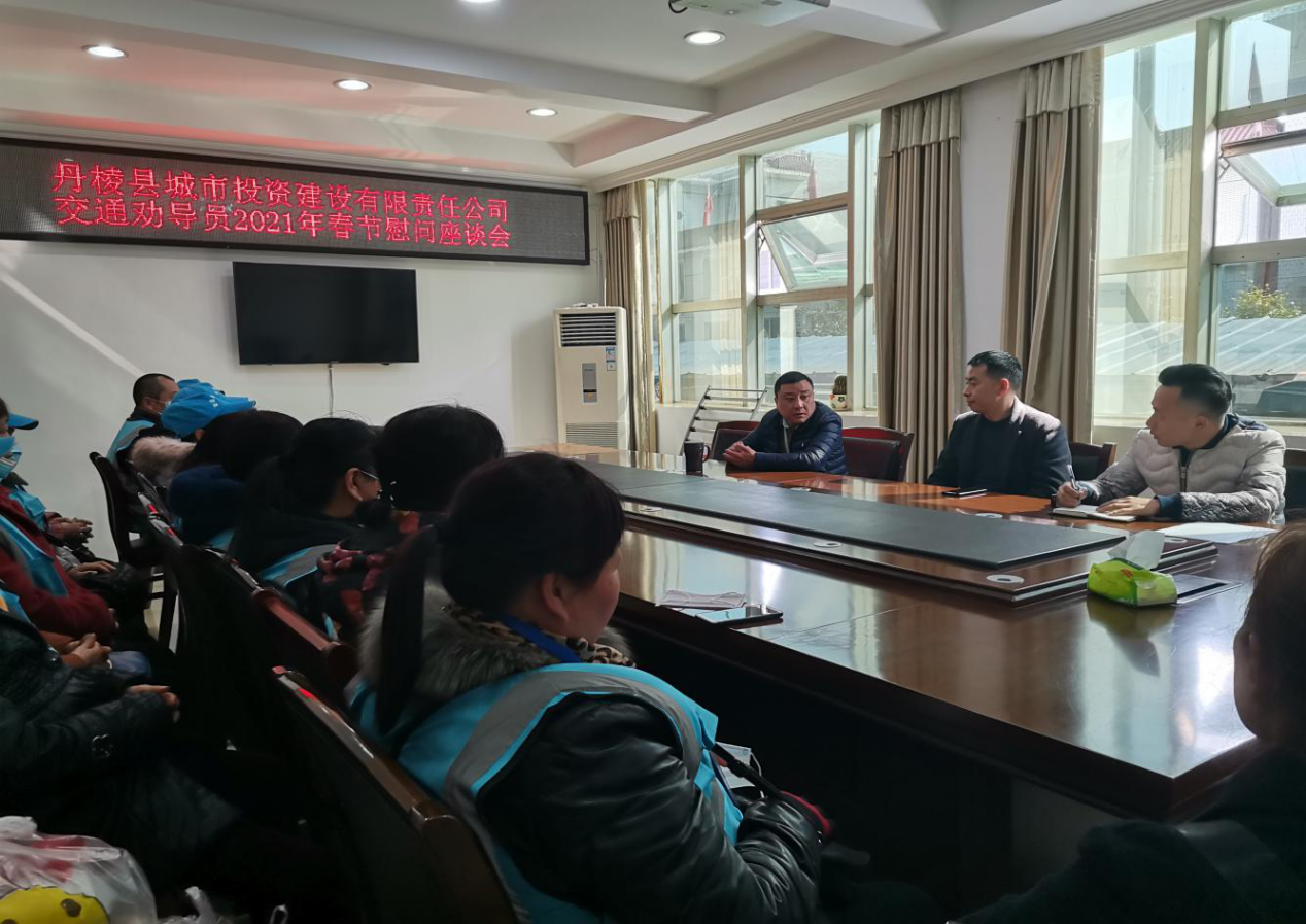春節(jié)將至,歲寒情深。2月5日,丹棱縣城市投資建設(shè)有限責(zé)任公司組織召開了交通勸導(dǎo)員2021年春節(jié)慰問座談會(huì),會(huì)議在丹發(fā)展公司董事長趙勇同志的主持下召開。