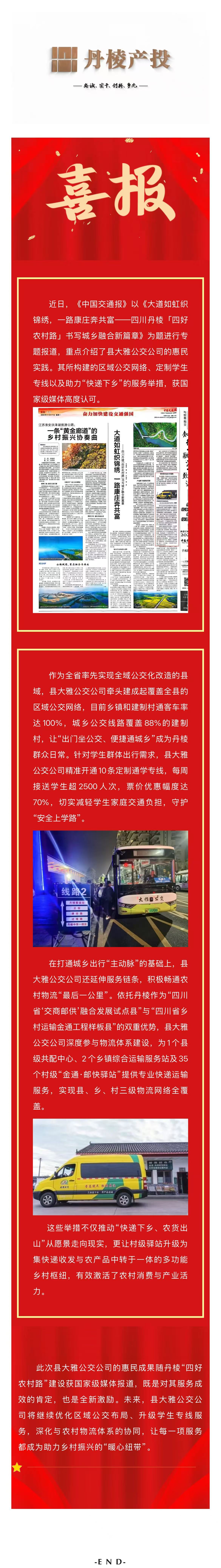 【縣交投公司】喜報(bào)!丹棱大雅公交惠民實(shí)踐登《中國(guó)交通報(bào)》,區(qū)域公交、學(xué)生專線與快遞下鄉(xiāng)織密幸福網(wǎng)
