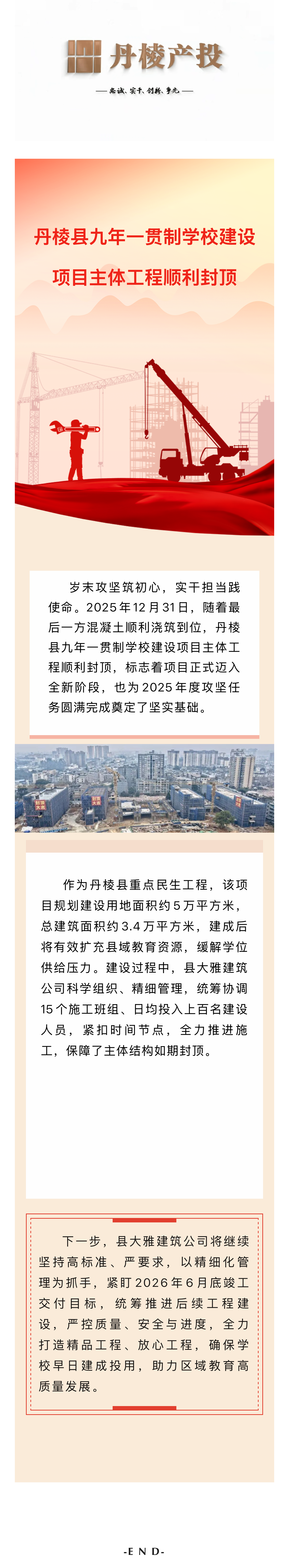 【縣大雅建筑公司】筑跡:丹棱縣九年一貫制學(xué)校建設(shè)項(xiàng)目主體工程順利封頂