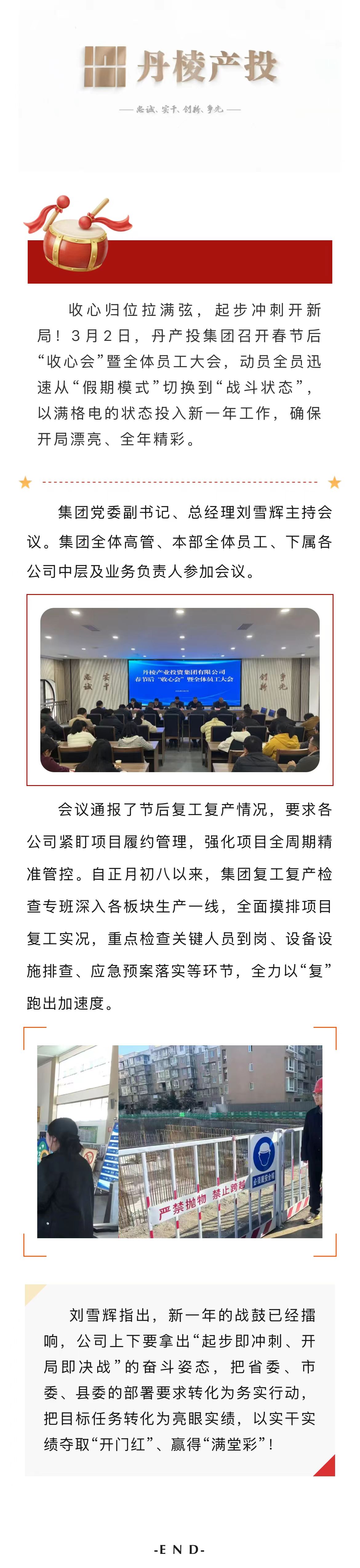 收心歸位拉滿弦 起步?jīng)_刺開(kāi)新局——丹產(chǎn)投集團(tuán)召開(kāi)春節(jié)后“收心會(huì)”暨全體員工大會(huì)