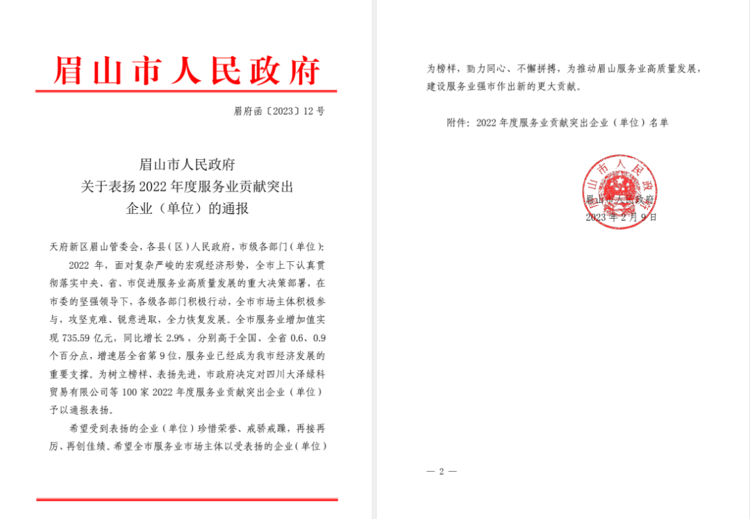 《關(guān)于表?yè)P(yáng)2022年度服務(wù)業(yè)貢獻(xiàn)突出企業(yè)(單位)的通報(bào)》