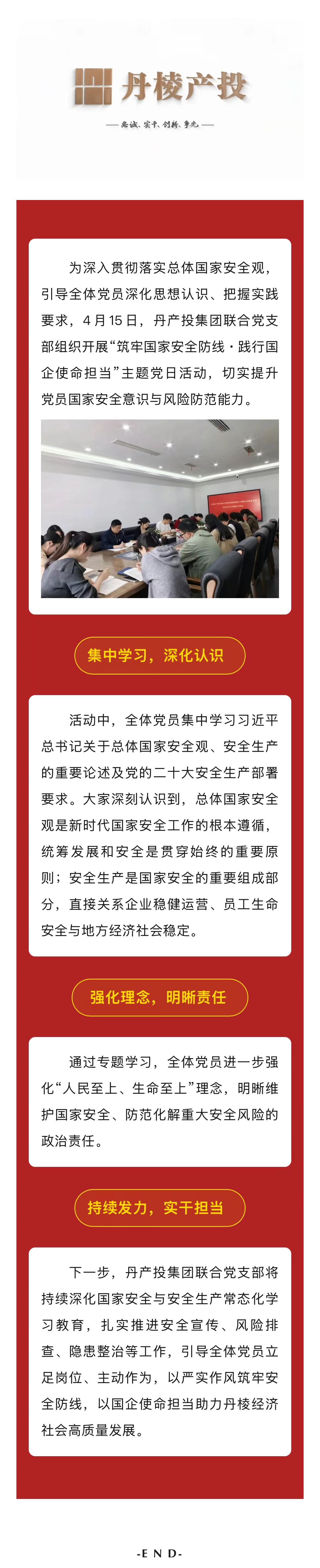 筑牢國家安全防線 踐行國企使命擔(dān)當——丹產(chǎn)投集團聯(lián)合黨支部4月主題黨日活動